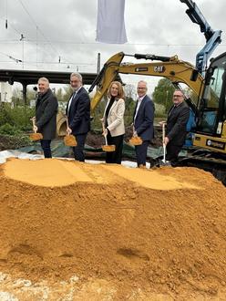 Dr. Klaus Vornhusen, Konzernbevollmächtigter der DB für die Länder Rheinland-Pfalz und Saarland, Petra Berg, Ministerin für Umwelt, Klima, Mobilität, Agrar und Verbraucherschutz des Saarlandes, Stefan Louis, Bürgermeister der Gemeinde Bous und Stefan Schwinn, Leiter Geschäftsbereich Personenbahnhöfe Regionalbereich Mitte, trafen sich heute vor Ort zum symbolischen Spatenstich.