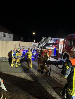 Maßnahmen: DLK in Absprache mit dem Rettungsdienst vor dem Gebäude in Stellung gebracht. Fahrbahn durch die Feuerwehr Bous und Feuerwehr Schwalbach gegen den fließenden Verkehr abgesichert. Ein Trupp des TLFs sowie der Feuerwehr Schwalbach zur Unterstützung des Rettungsdienstes in das Gebäudeinnere. Person auf Krankentragehalterung der DLK umgelagert. Person über die DLK aus einem Fenster im 1.OG gerettet, auf Erdniveau verbracht und an den Rettungsdienst übergeben.