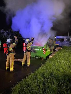 HLF zur Einsatzstelle. Polizei ebenfalls auf Anfahrt. Bei Eintreffen erneuter Brand des Großraumcontainers. Brandbekämpfung durch ein Trupp mittels Schnellangriff unter PA. Nach Beendigung der Löscharbeiten, Schaumteppich aufgebracht. Abschließend Kontrolle mittels WBK.