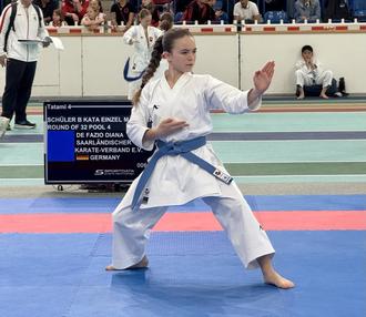Außerdem fanden die Deutschen Meisterschaften der Schüler in Halle statt. Unsere Athletin Diana DeFazio ging für den saarländischen Karateverband in der Disziplin Kata U12 an den Start. Den ersten Kampf konnte sie souverän für sich entscheiden, im 2. Kampf war sie leider der Kontrahentin unterlegen.