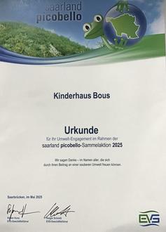 Nun haben sie die Urkunde von der erfolgreichen Picobello-Müllsammelaktion in Empfang genommen.