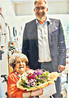 Am 21.05.2025 gratulierte Herr Bürgermeister Stefan Louis, im Namen der Gemeinde Bous, Frau Irene Renkes, ganz herzlich zu diesem außergewöhnlichen Jubiläum.