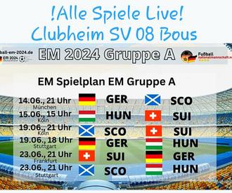 Erlebt die Fußball-EM 2024 mit allen Spielen LIVE auf einer Großbildleinwand im Clubheim!