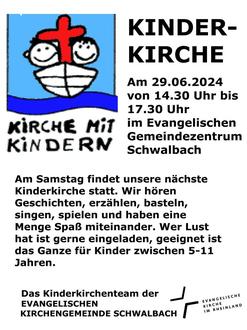 | 14.30 – 17.30 Uhr | Kinderkirche in Schwalbach |
