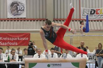 Bildunterschrift: Moritz Steinmetz AK 17/18 am Pauschenpferd