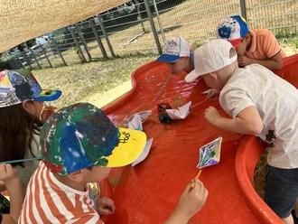 Wir leiteten die Kinder durch ein buntes Programm. Dazu zählten bspw. das Basteln und Gestalten von Schiffchen, welche bei einem Wettschwimmen zum Einsatz kamen. Mit einem gefüllten Wasserbecher wurde über das Klettergerüst geklettert. An der Cocktailbar gab es bunt gemischte, erfrischende Fruchtcocktails als Begleiter zur Pizza.