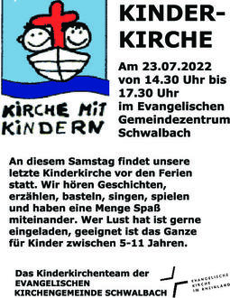 14.30 - 17.30 Uhr Kinderkirche in Schwalbach
