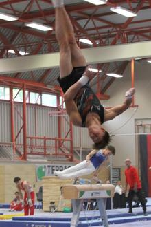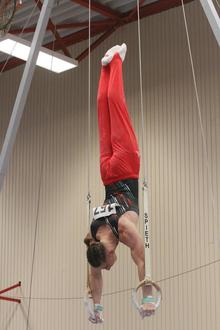 Moritz Steinmetz bei seiner Übung an den Ringen.