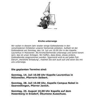 | 10.00 Uhr | Kirche unterwegs: Kapelle Campus Nobel Saarwellingen |