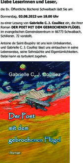 Lesung von Gabrielle C. J. Couillez am 03. August 2023 im Evangelischen Gemeindezentrum Schwalbach