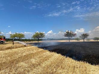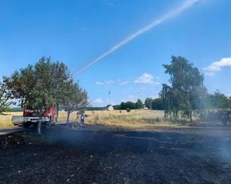 Beim Eintreffen der Feuerwehr Bous, Brand eines abgeernteten Feldes auf einer Gesamtfläche von ca. 250 qm, mit Ausbreitungsgefahr.