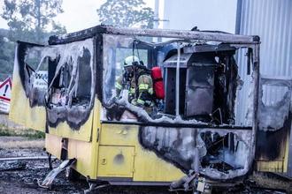 Beim Eintreffen der Feuerwehr Bous, Vollbrand eines Imbisswagens an einer Lagerhalle.