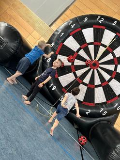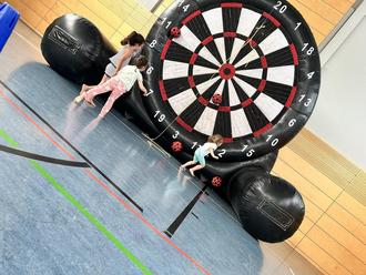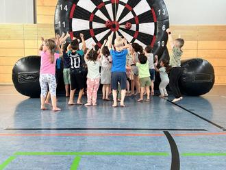 Björn Steinmetz hat der FGTS am Dienstag, den 15.07.2025 Hüpfburgen und eine Torwand zu ihrem Ferienprogramm zur Verfügung gestellt. Auch ein Sprungbock zur Gleichgewichtsförderung war dabei.