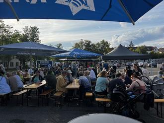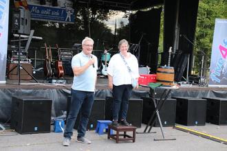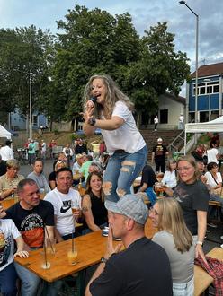 Bereits ab 16 Uhr konnte man in dem gemütlichen Marktplatzeckchen einen bedachten oder beschirmten Platz zum sitzen oder stehen finden. Grillstation und Cocktail- Sprit -Bar, Bierstände und Kurdisches Fingerfood lockten mit ihren Angeboten. Das Karussell für die jüngeren Besucher drehte bereits seine Runden. Traditionell wurde das Fest gegen 18 Uhr mit einer Gesangseinlage der MGV Concordia und einem Fassanstich durch Bürgermeister Stefan Louis und der 1. Vorsitzenden der Aktionsgemeinschaft Jutta Adam eröffnet. In kurzen Ansprachen wurden die Gäste begrüßt, sich bei allen Helfern und Unterstützern des Festes bedankt und die Daumen für gutes Wetter gedrückt. Schlag um Schlag wurde das Fass angestochen und mit reichlich Schaum das erste Bier gezapft. Mit Power und guter Laune sorgte Sandra J. mit Rock, Pop und Schlager auf der Bühne dass die Stimmungsbarometer in die Höhe schnellten. Gemeinsam mit Finja kamen sogar Regenbogenfarben auf den Markplatz. „Bous ist nicht aus Zucker“ stellte die Band five4fun richtig fest und heizte weiter mit fetziger Musik ein. Es wurde im Regen getanzt und gefeiert. Mit einigen kurzen Regenschauern musste die heiße Stimmung auf dem Marktplatz sich abkühlen lassen.