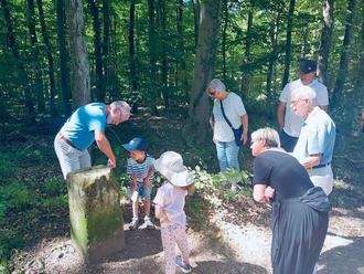 Entspannt ging es zunächst vom Treffpunkt am Hundedressurplatz zur Breitbornhütte und von dort durch den Wald in Richtung Petershof. Auf der insgesamt ca. 8 km langen Strecke kam die Wandergruppe gleich an mehreren Denkmälern und historischen Grenzsteinen vorbei. Der Wanderführer Anton Fery hatte dazu als bekannter Bouser Heimatforscher viel Wissenswertes zu berichten, was bei den Anwesenden sehr gut ankam und zu einem angeregten Austausch führte.