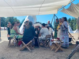 Nach ca. 2,5 Stunden schweißtreibender Wanderung waren dann aber doch alle froh, als das Lager des Western-Country-Clubs erreicht wurde, wo die Wanderung schließlich offiziell endete. Im Lager hatten die Wanderinnen und Wanderer dann auch die Gelegenheit sich wieder mit leckeren Grillwürstchen und Pommes frites und später auch mit Kaffee und Kuchen zu stärken.