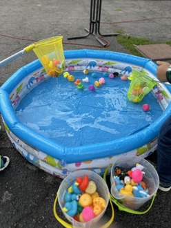 Damit hat keiner gerechnet, insgesamt 148 Kinder meldeten sich für die Stempel-Jagd an. Stempel gab es beim Dosen werfen, Gesichter und Tattoo schminken, Sinne erproben, Stelzen laufen, Enten fischen und Basteltisch. Die Hüpfburg und das Karussell wurden rege in Anspruch genommen. Schnell füllte sich die Karte und es gab für jedes Kind eine Bratwurst, ein Getränk und zum Nachtisch ein Eis. Mit voller Karte ging es an das Glücksrad und es wurde noch ein netter Preis ausgesucht. Ein Auftritt von der Bambini Minigarde durfte nicht fehlen und wurde diesmal auf großer Bühne gezeigt.