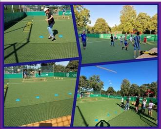 Unser Jugendsportwart männlich Scheidt, Pascal (Rossi) und unsere Jugendtrainerin Seuren, Hana hatten in der „Box“ einen schönen Parcour aufgebaut. Verlangt wurde Schnelligkeit, Koordination, Auffassungsfähigkeit und Treffsicherheit (Handball).