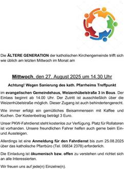 Unser Gemeindebüro ist am Donnerstag, 28.08.2025, wegen einer Fortbildung geschlossen.
