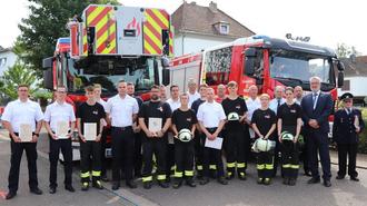 Befördert wurden die Feuerwehrmannanwärter Moritz Fery und Felix Ruhe zum Feuerwehrmann, die Feuerwehrmänner Laurenz Fery und Marc Pingen zum Oberfeuerwehrmann, der Oberfeuerwehrmann Martin Klein zum Löschmeister, die Löschmeister Christian Kober und Steven Klein zum Oberlöschmeister, der Oberlöschmeister Marc Mischke und der Hauptlöschmeister Torsten Madler zum Brandmeister und der Brandmeister Kevin Coassin zum Oberbrandmeister.
