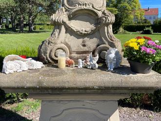 Ich bitte daher, die Besitzer, diese Gegenstände abzuräumen und auch in Zukunft keine Gegenstände mehr auf dem Podest und vor dem Kreuz abzustellen.