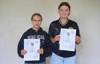 Das Projekt hatte aber noch ein weiteres Ziel: Die jungen Forscher sollten mit den selbst hergestellten Farben ein Bild malen. Dieser Herausforderung stellten sich unter anderem Frieda Reuter und Mia Laufer (beide Klasse 9.1), die für ihre Beiträge nun eine Urkunde erhielten.