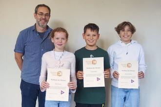 Zum Start des Wettbewerbs „Problem des Monats“ im aktuellen Schuljahr wurden die Jahresbesten aus dem letzten Schuljahr geehrt. Viktor Blug, aktuell in Klasse 6.1, erreichte den ersten Platz, Henry Gothieu aus der Klasse 7.1 kam auf den zweiten und Lina Faust aus der Klasse 6.1 auf den dritten Platz. Mit großer Freude nahmen die drei ihre Urkunden entgegen.