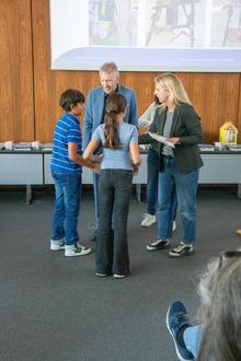 Die Siegergruppen zeichneten Landrat Patrik Lauer und Sandra Quinten, 1. Kreisbeigeordnete, gemeinschaftlich aus. „Schon die Jüngsten zu Natur-Experten zu machen, fördert Neugier, Verantwortung und handlungsorientiertes Denken. Durch Projekte in Kita, Schule und Freizeitgruppen lernen Kinder, wie Lebensräume entstehen, wie Pflanzen und Tiere zusammenleben und warum Biodiversität für unser Wasser, Boden und Klima unverzichtbar ist. Indem wir früh ermutigen, Kreativität mit Umweltwissen zu verbinden, schaffen wir Botschafterinnen und Botschafter für eine nachhaltige Region“, erklärte Landrat Lauer in seiner Begrüßungsrede.