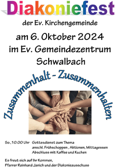 Am Sonntag, 6. Oktober 2024, feiern wir unser Diakoniefest. Das Thema wird „Zusammenhalt – Zusammenhalten“ sein. Es wird ein schöner Tag mit gemeinsamen Aktionen und auch für das leibliche Wohl ist bestens gesorgt.