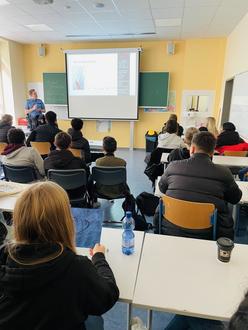 Zu Beginn des Schuljahres startete die Bisttalschule wieder mit dem Schwerpunkt der Berufsorientierung für die Schüler. Gleich in der ersten Schulwoche nach den Sommerferien wurde ein Bewerbertraining für die Klassenstufen 9 und 10 durchgeführt. Nun folgte Ende September der Berufsinformationstag am Schulstandort in Bous. So hatten die Schüler Gelegenheit, sich in verschiedenen Workshops über Unternehmen unserer Region und verschiedene Ausbildungseinrichtungen zu informieren. Die Referenten der eingeladenen Firmen erläuterten den Schülern Profile, Anforderungen, Bewerbungsverfahren und Chancen der jeweiligen Berufe. Die Schüler konnten sich hierdurch ein Bild über mögliche Berufsfelder machen und gezielt weiterführende Kontakte knüpfen. Die Bisttalschule bedankt sich an dieser Stelle bei folgenden Referenten und Anbietern der Workshops, die von den Schülern sehr positiv angenommen wurden: Nordgetreide, Nedschroef, Marienhaus GmbH, Kita gGmbH, Maler- und Lackiererinnung des Saarlandes, Deutsches Rotes Kreuz, Rechtsanwaltskanzlei Penther, LIDL, Polizei des Saarlandes, Hauptzollamt Saarbrücken und Bundeswehr.