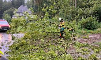 Laut Mitteilung der Integrierten Leitstelle Saar seien aufgrund einer Unwetterlage über Bous zwei Bäume umgestürzt und ein Bauteil drohe herabzustürzen.
