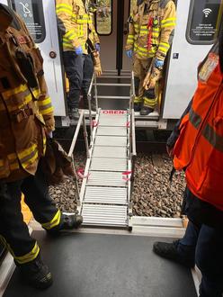 Nach Rücksprache mit dem DB Notfallmanager wurden zwei Trupps mit Hilfe des Ersatzzuges zu dem stehen gebliebenen Zug gebracht.
