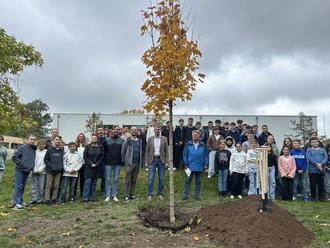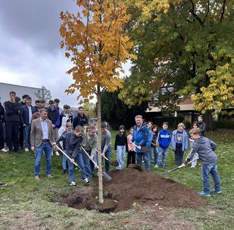 Nach den Reden hieß es: Ärmel hochkrempeln und buddeln! Die gemeinsame Pflanzaktion sorgte für viel Freude und Begeisterung. Besonders für die Schülerinnen und Schüler war es ein Erlebnis, selbst Hand anzulegen und den Baum in den kommenden Jahren wachsen zu sehen - als lebendiges Symbol der Einheit mitten auf ihrem Schulhof.