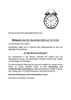 | 15:15 Uhr | Gottesdienst in der Seniorenresidenz Lindenpark Ensdorf |