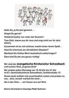 | 19:30 Uhr | Chorprobe in Schwalbach |
