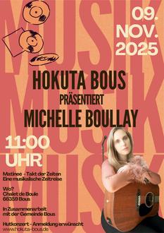 Am Sonntag tritt im Rahmen unserer Kooperation mit der Gemeinde die Bouser Sängerin Michelle Boullay in unserem gut geheizten Chalet de Boule auf. Sie führt singend durch eine Zeitreise mit Liedern bekannter Interpretinnen und trägt auch eigenes Liedgut vor.