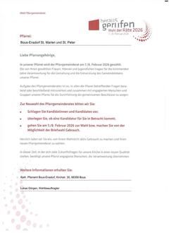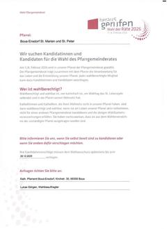 Er liegt in der Zeit vom bis 25.11.2025 im Büro des Pastoralen Raumes Saarlouis, Kavalleriestraße 11, 66740 Saarlouis, zur Einsichtnahme aus.