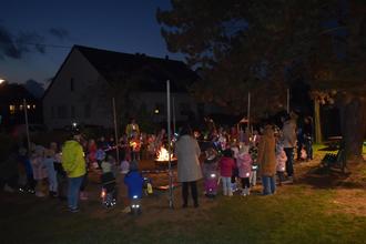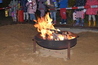 Danach gingen wir mit den Laternen auf unser Außengelände und haben uns dann am Sandkasten zu einem Martinsfeuer getroffen und gemeinsam nochmals die Martinslieder gesungen. Vielen Dank an die freiwillige Feuerwehr Bous, die in diesem Jahr sich um das Martinsfeuer gekümmert hat. Auf diesem Wege auch ein herzliches Dankeschön an unseren Förderverein. Während der St. Martinsfeier haben sie die Eltern zu einem Umtrunk in unseren Eingangsbereich eingeladen.