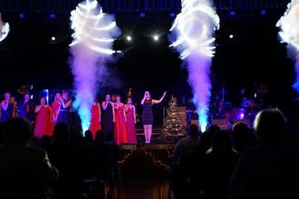 Licht und Bühnendeko zaubern ein Winterwonderland. Da kann Weihnachten kommen. Um den Zauber zum Fest perfekt zu gestalten ist in dieser Adventszeit Illusionist Maxime Maurice mit dabei… Da staunen Augen und Ohren.