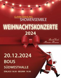 Das Gunni Mahling Show-Ensemble zaubert auch in diesem Jahr eine stimmungsvollen Advent–Weihnachtskonzertreihe mit sechs Terminen im Dezember und präsentiert von SR 3. Am 20.12.24 findet sich das Showensemble in Bous in der Südwesthalle wieder.