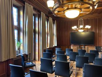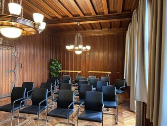 Im Rahmen der Neugestaltung wurde nicht nur neues Mobiliar angeschafft, auch der Parkettboden wurde durch Mitarbeiter des Betriebshofes aufgearbeitet. So ist der historische Raum jetzt wieder für die nächsten Jahre gerüstet.