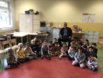 Zu Besuch kam Herr Bürgermeister Stefan Louis und las den Kindern das Buch „Der Regenbogenfisch“ vor.