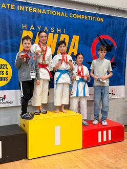 Am Samstag den 24.01. fand im belgischen Liège der internationale Hayashi Panda Cup statt. An dem Turnier nahmen knapp 550 Athleten aus 9 verschiedenen Ländern teil. Auch das Karate Dojo Bous war mit 5 Wettkämpfern am Start. In dem starken internationalen Teilnehmerfeld erkämpften sich die Kinder tolle Platzierungen. Matthias und Diana holten beide in der Kategorie Kata U12 intermediate Gold. Für Diana gab es sogar doppeltes Gold. Sie dominierte auch in der Kategorie Kata U12 Advanced und konnte sich hier eine weitere Goldmedaille sichern.