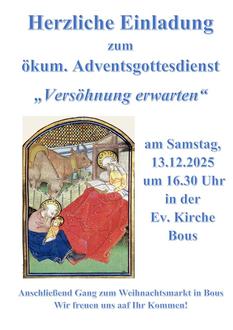 | Ökumenischer Gottesdienst zum Weihnachtsmarkt am Vorabend zum 3. Advent | |