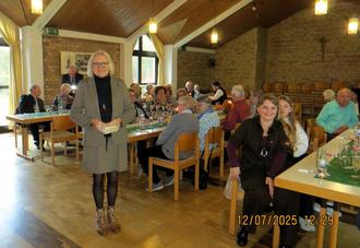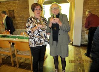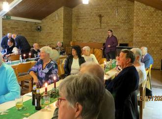 Zum weltlichen Teil der Feier empfingen die erste Vorsitzende Ingrid Mann, der Chorleiter und 2. Vorsitzende Jonas Mayer und die Schatzmeisterin Angelika Flasche im Pfarrheim Wadgassen alle aktiven und inaktiven Mitglieder sowie einige Gäste des Chores. Eingeläutet wurde der gemütliche Tag mit einem Sektempfang, den das Chormitglied Gertrud Geber anlässlich ihres 75. Geburtstags gesponsert hatte. Nach dem gemeinsamen Mittagessen verbrachten die Anwesenden einen gemütlichen Nachmittag mit Gesang und einigen Weihnachtsgedichten bzw. -geschichten. Nachdem der Chorleiter Jonas Mayer Weihnachtslieder am Klavier angestimmt hatte, stimmten aktive und inaktive Mitglieder des Chores sowie die Gäste mit ihrem Gesang ein. Anschließend trugen Ingrid Mann und Angelika Flasche einige Weihnachtsgedichte bzw. -geschichten vor. Bei Kaffee und Kuchen klang der gemütliche Nachmittag mit den Klavierklängen von Weihnachtsliedern, gespielt von Joachim Geber, allmählich aus. An dieser Stelle gebührt unser ganz besonderer Dank an Maria Luxemburger von der Frauengemeinschaft, die uns an unserer Cäcilienfeier eine wertvolle Hilfe war.