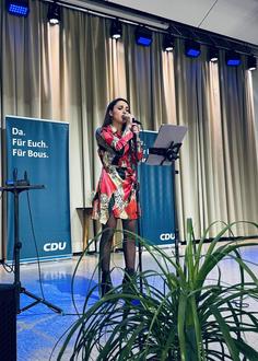 Für die musikalische Umrahmung des Abends sorgte die Sängerin Vanessa Servello, die mit ihrem Gesang zu einer festlichen und zugleich angenehmen Stimmung beitrug. Auch ihr galt der Dank der CDU Bous für die gelungene musikalische Begleitung der Veranstaltung.
