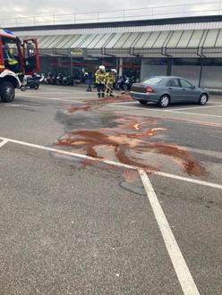 Ein Roller hat nach einem Technischen Defekt eine Öl-/ Benzinspur auf dem Parkplatz eines Einkaufszentrums verursacht.