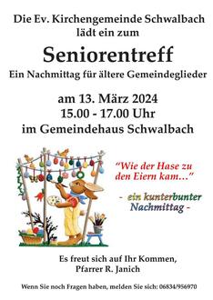 | 14.30 – 17.30 Uhr | Kinderkirche in Schwalbach |