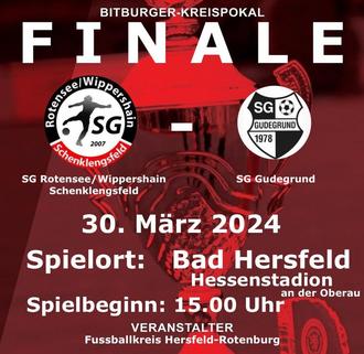 Am kommenden Samstag, 30.3.2024, findet das Endspiel um den Bitburger Kreispokal zwischen der SG Schenklengsfeld/Rotensee/Wippershain und der SG Gudegrund um 15:00 Uhr im Stadion Oberau in Bad Hersfeld statt.