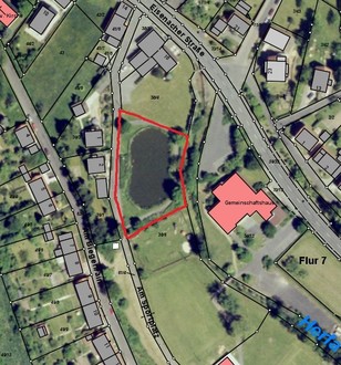 Eine Teilfläche des Grundstückes soll verpachtet werden, dabei handelt es sich um den Teich inklusive angrenzende Uferbereiche. Die Fläche hat eine ungefähre Größe vom 2.500 m².